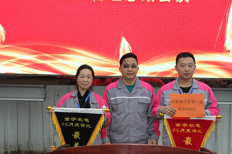 匯報結束后,由公司6S執(zhí)行委員會會長、董事長助理代振坤為月度6S最佳和最差分別授予流動紅旗和流動黑旗,并如是說:歡樂積分開展兩個月以來,我們取得了不小的進步,尤其是四月份,整個積分氛圍得到了大幅度的提升,各層級、各課室都涌現(xiàn)出了許多值得表揚的人和事,但是存在的問題也不少。歡樂積分的主旨本身就是激發(fā)我們所有金宇人能夠充分的發(fā)揮主觀能動性,與公司的發(fā)展捆綁在一起,并長期走下去。第三方機構不僅要從過程中,還要從形式上去進一步完善好,爭取讓我們的積分管理體系早日步入正軌。在四月份的6S管理中,我們評選出了最優(yōu)和最差,也授予了流動旗。為什么是流動的?因為你這個月做得好,并不代表下個月也是最佳,這個月是最差,說不準經(jīng)過努力,下個月你就是最佳。成績只是代表過去,勝出的不要驕傲,最差的不要氣餒,只要我們努力,成績總會持續(xù)改善,我們的現(xiàn)場才會持續(xù)進步,我們的思想才會持續(xù)進步。金宇正處在高速發(fā)展的軌道上,只要我們大家心往一處想,勁往一處使,我相信不久的將來,我們都會實現(xiàn)自我的大夢想。