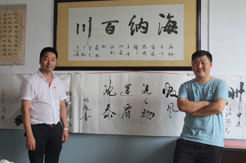 面對此情此景,一行人按捺不住內心的喜悅,有與當地書記暢聊時代政策優(yōu)勢的,有聽講解員講解村建之路的,有觀摩描述沈岙千年軌跡的,有紛紛拍照留戀的。作為市書法協(xié)會會員的冉部長,還饒有興致的提筆寫道:數風流人物,還看沈岙。