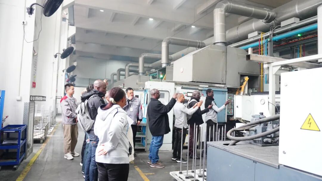 一樓壓鑄車間,高效、精準(zhǔn)的自動(dòng)化生產(chǎn)線讓科特迪瓦的教師們對(duì)中國(guó)制造業(yè)的現(xiàn)代化水平有了全新的認(rèn)識(shí)。